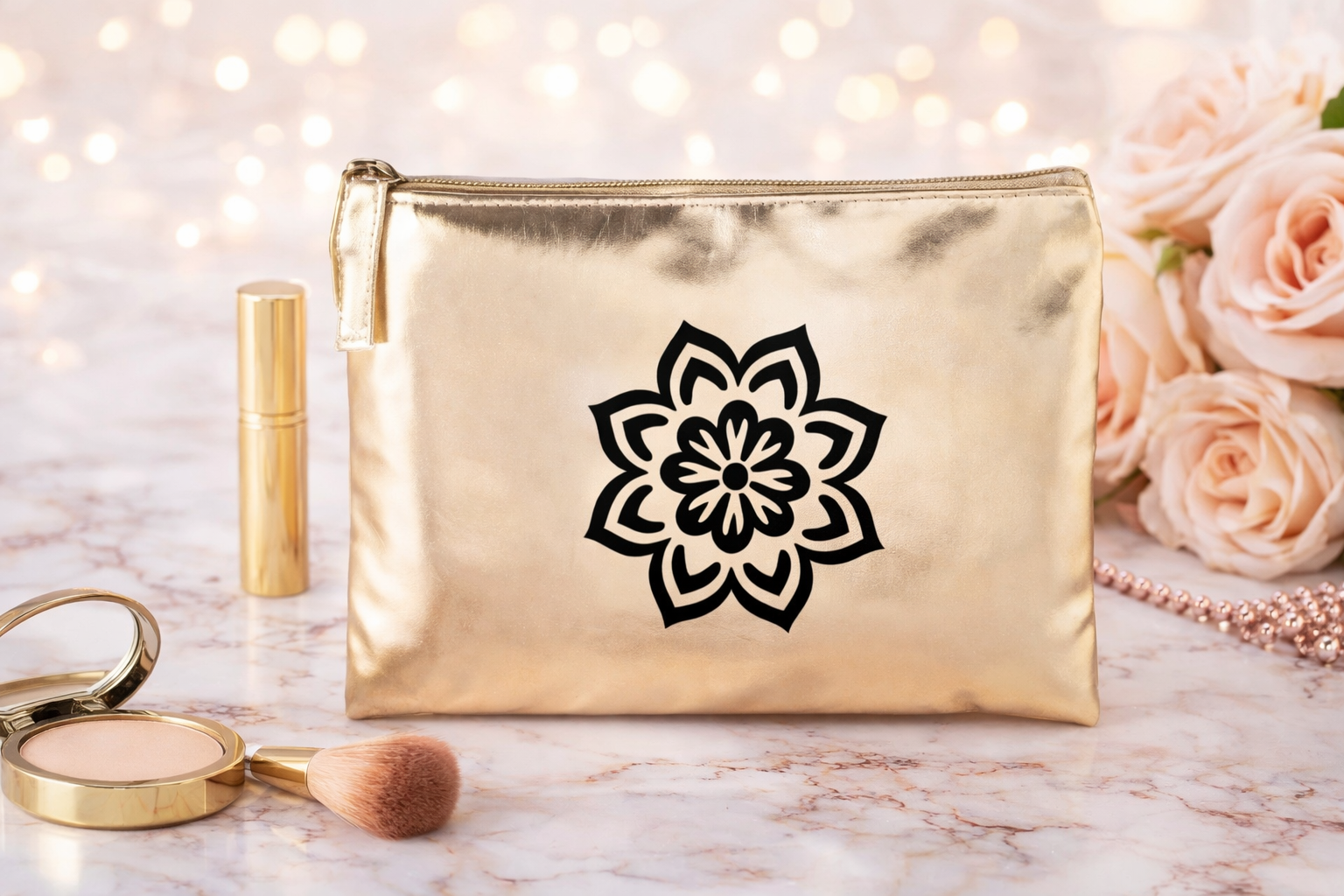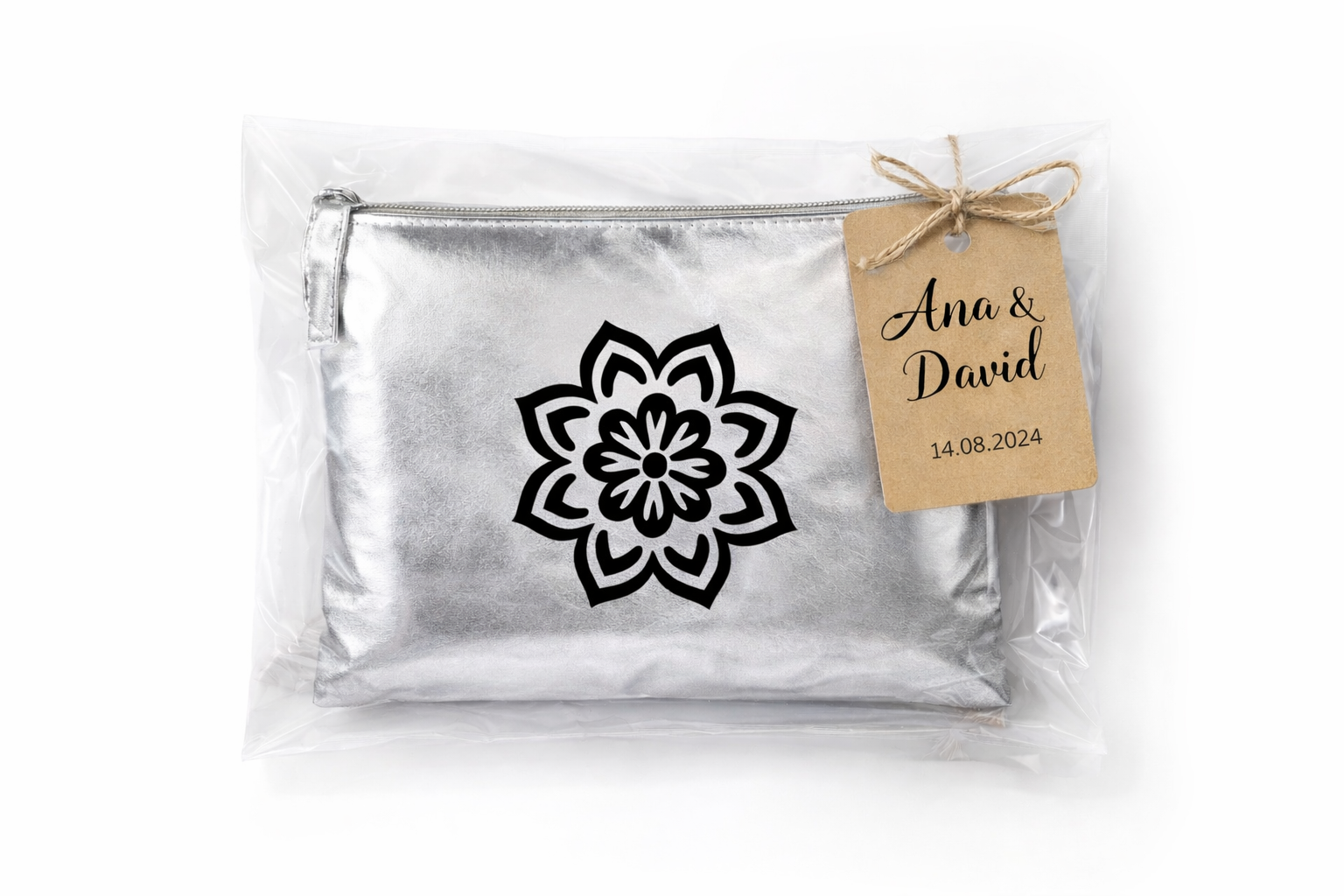 Este bolso neceser metálico con diseño de mandala es una opción elegante y funcional para regalar o para uso diario. Su acabado brillante y su delicado dibujo de mandala aportan un estilo sofisticado y atemporal, ideal para todo tipo de celebraciones.