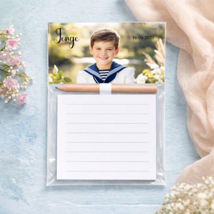 Libro de Firmas de Comunión Personalizado en Madera – Con Inicial Calada y Bolígrafo Grabado