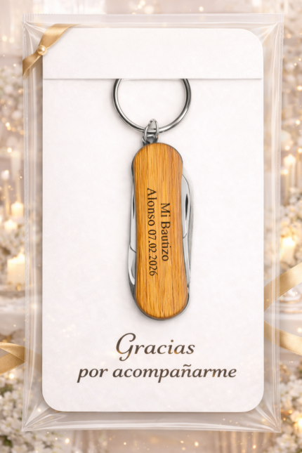 La navaja multifunción personalizada para bautizo es un detalle original, práctico y elegante que sorprenderá a tus invitados desde el