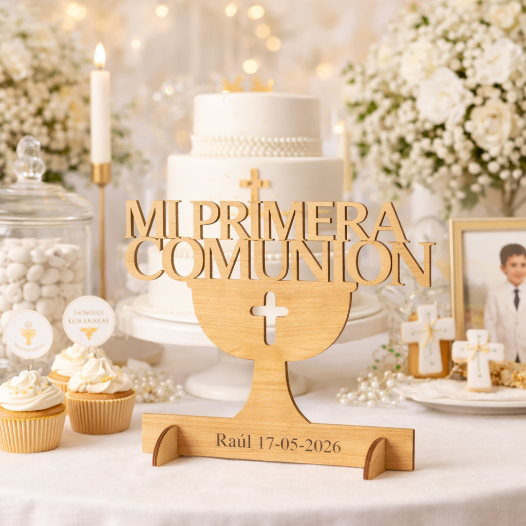 El cartel madera primera comunión personalizado es un detalle decorativo perfecto para celebrar un día tan especial como la Primera Comunión. Fabricado en madera natural de alta calidad, este cartel combina elegancia, sencillez y significado, convirtiéndose en uno de los elementos protagonistas de la decoración.
