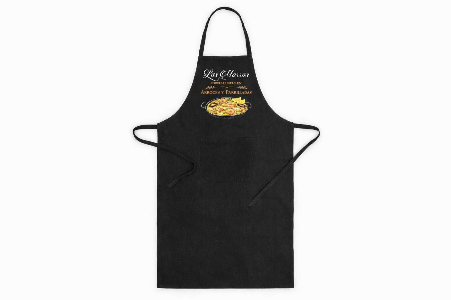 Delantal personalizado con logo ideal para hostelería, negocios o regalos personalizados. Fabricado en tejido TC resistente con bolsillo frontal y cintas ajustables para mayor comodidad y uso profesional.