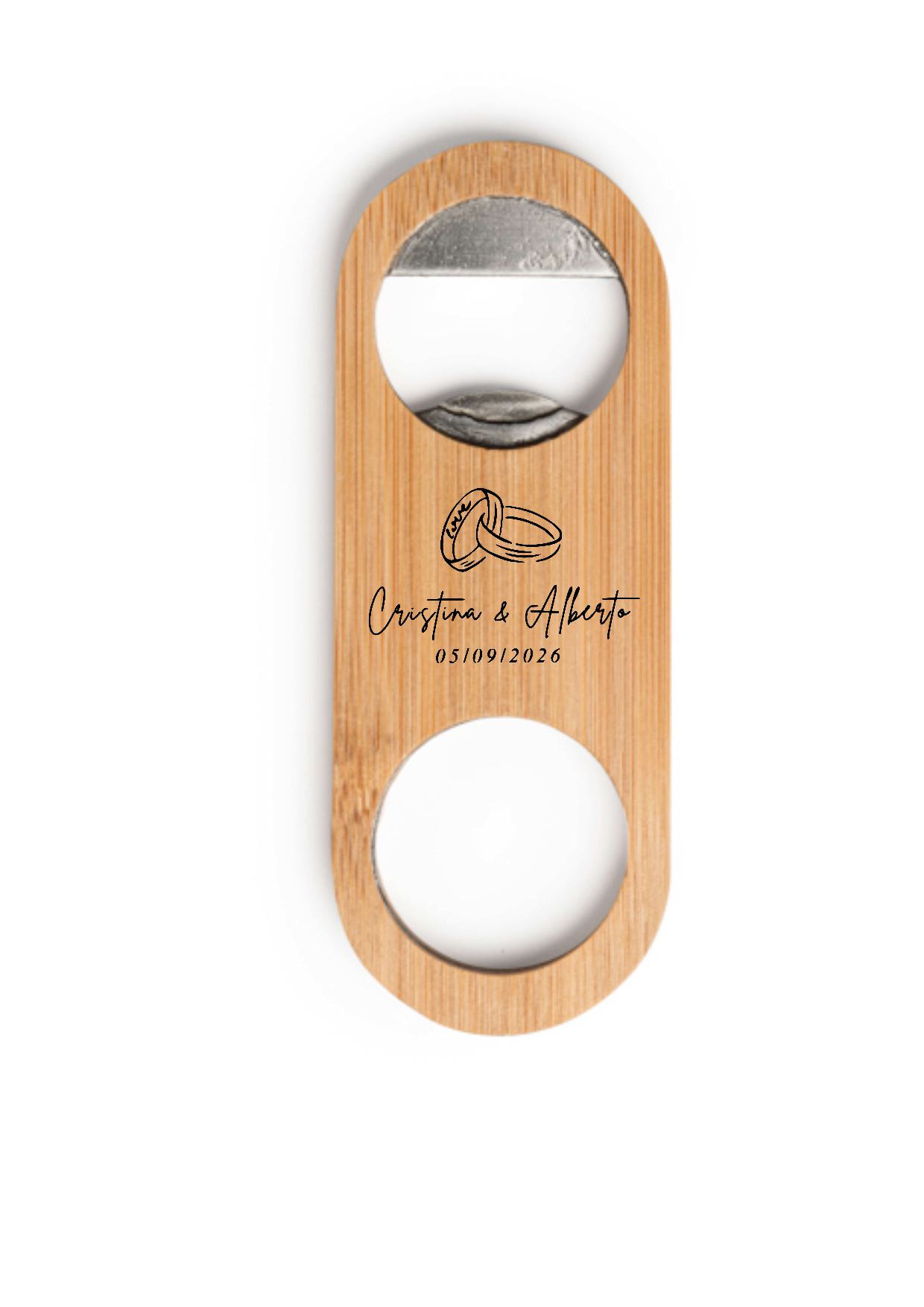 Este abridor de botellas de bambú personalizado es una opción original, práctica y sostenible para quienes buscan un regalo diferente y con significado. Fabricado en bambú natural, destaca por su resistencia, ligereza y acabado elegante, convirtiéndose en un complemento ideal tanto para el uso diario como para ocasiones especiales.