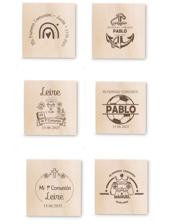 Asimismo, su diseño en madera aporta un estilo natural y elegante que encaja perfectamente con decoraciones de comunión clásicas, modernas o rústicas. De esta manera, no solo funciona como regalo, sino también como elemento decorativo dentro del evento.