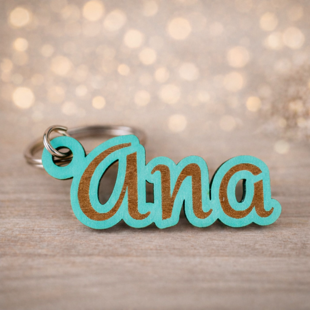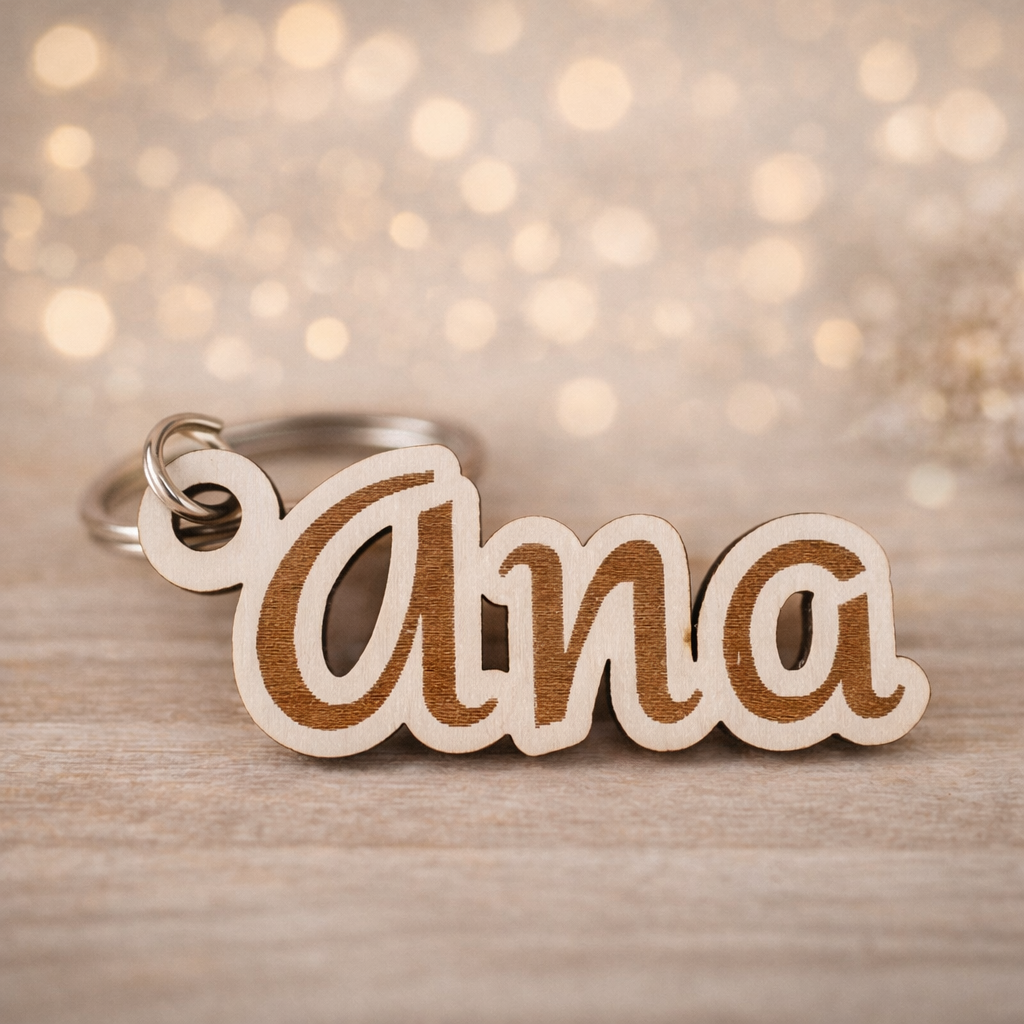 Llavero marcasitios en madera, personalizado con nombre y acabado ligero y resistente. Un detalle elegante y funcional, perfecto para organizar mesas y sorprender a los invitados.