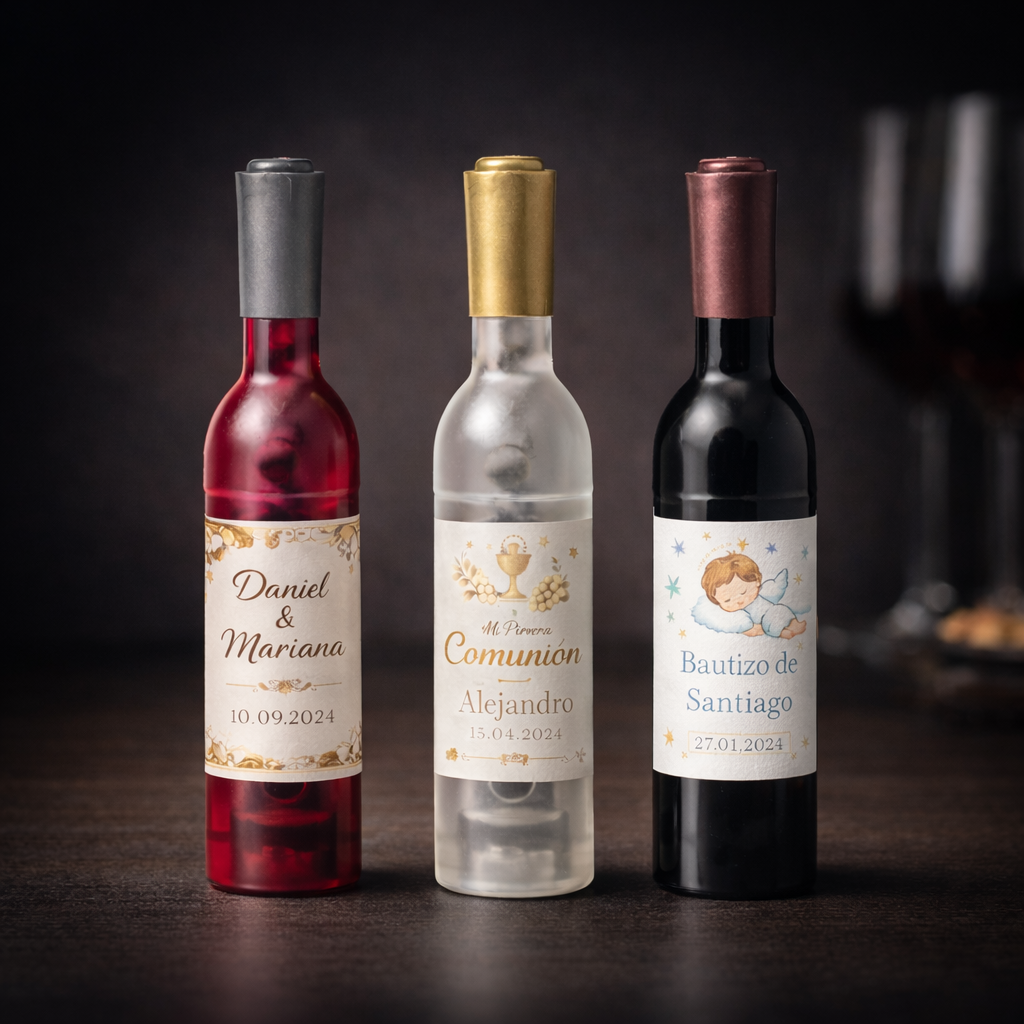 El Sacacorchos Magnético Botella Personalizado es uno de esos detalles que combinan utilidad, elegancia y recuerdo. Perfecto para bodas, comuniones, bautizos o cualquier celebración especial, este abridor con forma de botella de vino se convertirá en un regalo que tus invitados usarán durante años.